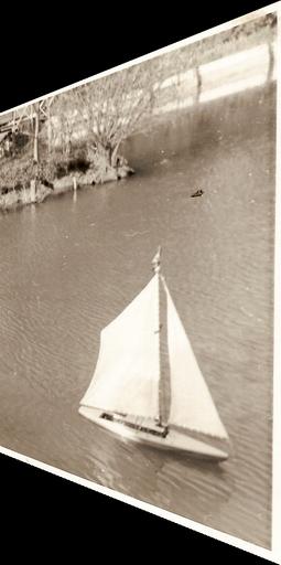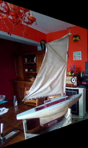 | | A cet instant, le découragement se fit sentir, d'où la construction d'un voilier (sans plan), la coque a été sculptée dans un bloc de bois de 1m * 30 cm * 30 cm.